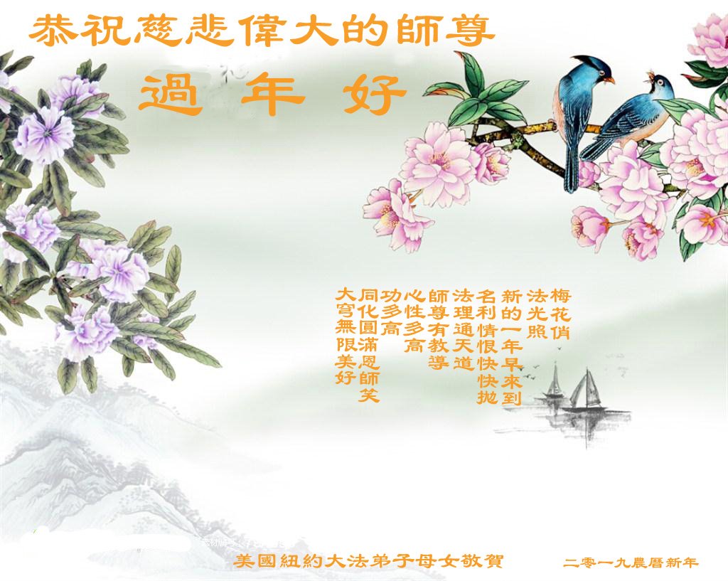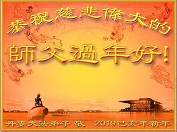 | 【明慧网二零一九年二月五日】自一九九二年法轮大法从中国长春市开传以来,已弘传到全球一百多个国家和地区,获得热烈的反响,越来越多的各族裔民众走入大法修炼,净化身心,返本归真。 2019年华人传统新年到来之际,从北美到南美,从俄罗斯到东南亚,从欧洲大陆到日本与南韩,从冰天雪地的北欧四国(芬兰、挪威、丹麦与瑞典),到烈日炎炎的澳大利亚与阿根廷,大法弟子们发来了一幅幅独具特色的绚丽贺卡,表达弟子们对师尊的无限感恩,恭祝师尊新年快乐! 明慧网收到了来自保加利亚、伊朗、捷克、斯洛伐克、斯洛文尼亚、美国、韩国、西班牙、芬兰、日本、加拿大、巴西、塞浦路斯、葡萄牙、俄罗斯、马来西亚、奥地利、以色列、德国、波兰、乌克兰、英国、意大利、瑞典、挪威、芬兰、拉脱维亚、罗马尼亚、塞尔维亚和黑山、苏格兰、印尼、法国、荷兰、比利时、爱尔兰、瑞士、丹麦、匈牙利、波黑、澳大利亚、新西兰、泰国、土耳其、阿联酋、菲律宾、沙特阿拉伯、阿根廷、希腊、越南、台湾、香港等51个国家和地区大法弟子发来的敬致师尊的贺信。以下为其中部份。 保加利亚大法弟子恭祝师尊过年好!