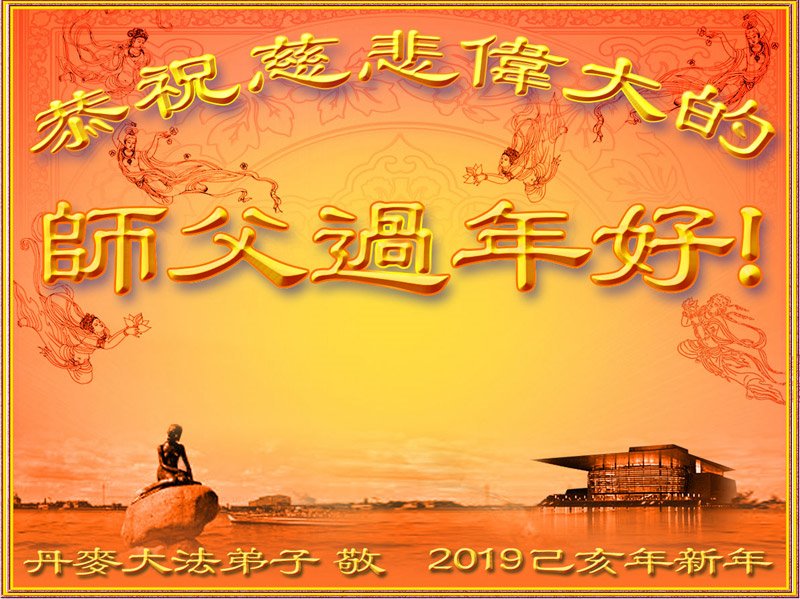 尊敬的师父:您好!在师尊救度苍穹无量众生、法正洪宇的伟大正法中,又一个中国新年来临了。值此辞旧迎新之际,法国大法弟子在无限感恩中向慈悲伟大的师父拜年!恭祝师父新年快乐! 法国大法弟子合十敬拜! 得度(如梦令) 残宇落尘无助 幸遇师尊救护 沁浩荡慈悲 天地法轮旋舞 得度 得度 法正洪穹永固 丹麦全体大法弟子恭祝慈悲伟大的师父2019己亥年过年好!