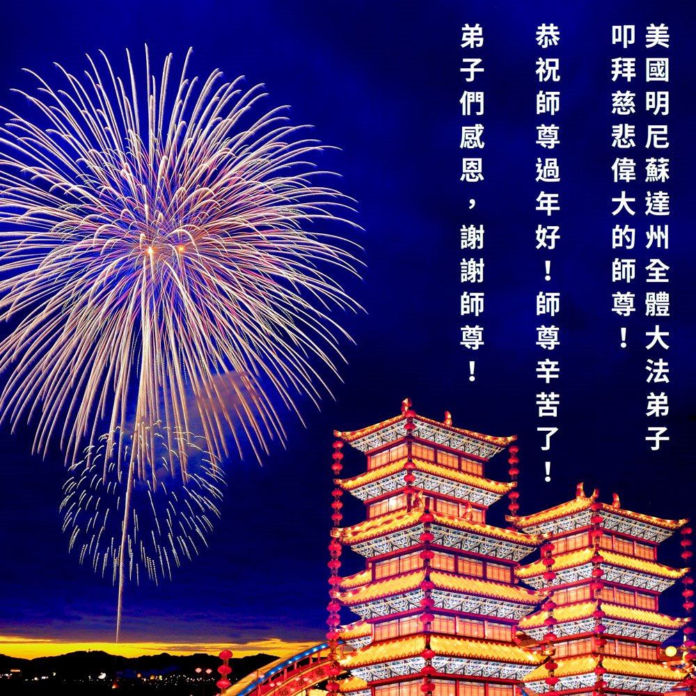 美国明尼苏达州全体大法弟子叩拜恭祝师尊过年好!