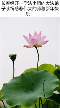 长春经开一学法小组的大法弟子恭祝慈悲伟大的师尊新年快乐! 吉林省长春市宽城区一大法弟子恭祝慈悲伟大的师尊新年快乐!