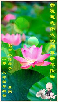 北京市朝阳区大法弟子恭祝师尊新年快乐! 最崇敬、最感恩、最美好的衷心恭祝师尊2019中国新年快乐!师父辛苦了!翘首盼望师尊早日回到祖国大陆! 北京朝阳区大法弟子叩首敬上 北京房山大法弟子一个学法小组:祝慈悲伟大的师尊新年好!