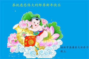 广西一大法弟子家庭祝李洪志师父过年好!师父辛苦了!祝愿师父过年愉快、开心! 广西桂林大法弟子恭祝师尊新年好!
