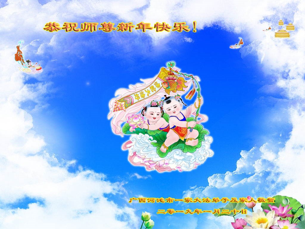 广西河池市一家大法弟子及家人恭祝伟大的师尊过年好!