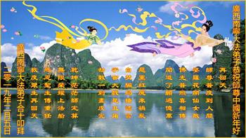 【明慧网二零一九年二月五日】 广西壮族自治区桂林市荔浦县大法弟子恭祝慈悲伟大的师尊新年快乐!