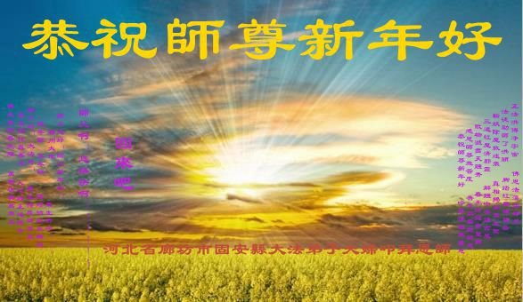恭祝师父新年快乐!感谢师父对我们全家的护佑,谢谢师父。 河北廊坊香河一老年大法弟子恭祝师尊新年好!