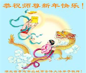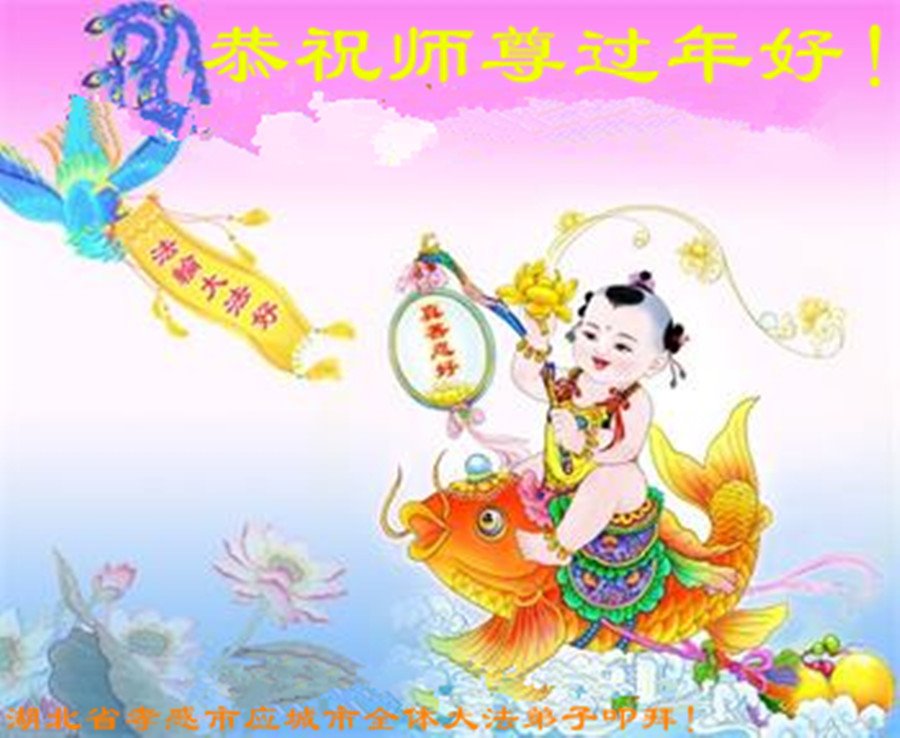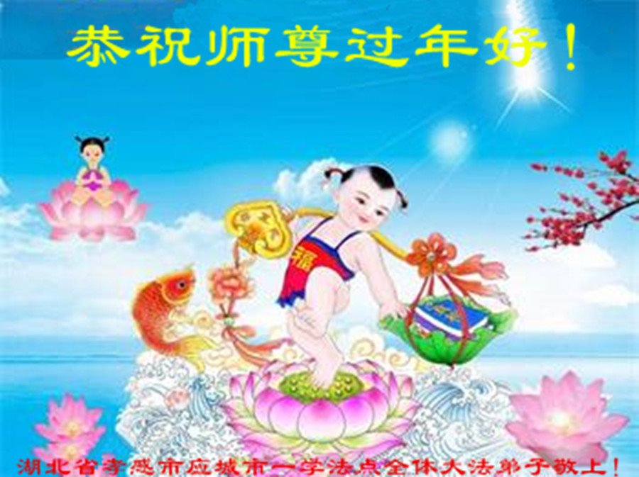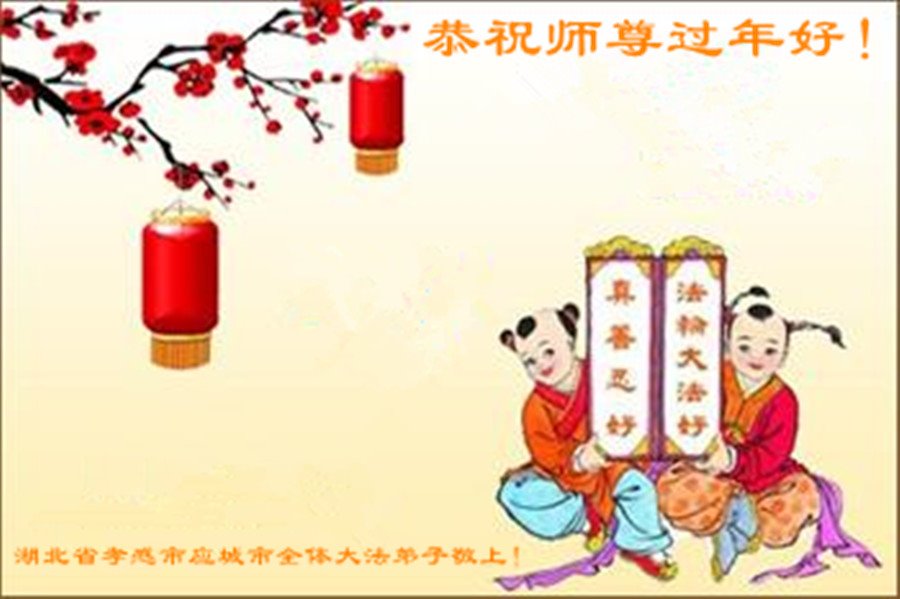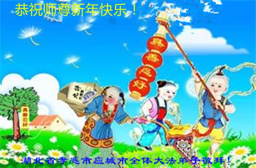 恭祝师尊新年快乐! 湖北应城市东马坊全体大法弟子 湖北省武汉地区一母女恭祝慈悲伟大的师父过年好!师父辛苦了!谢谢师父!
