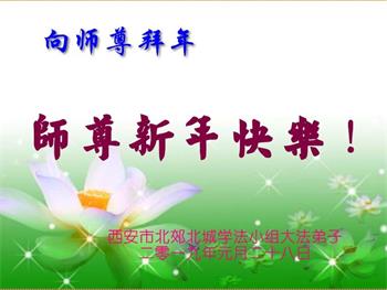 陕西省西安北郊北二环一学法小组大法弟子恭祝师尊新年快乐!