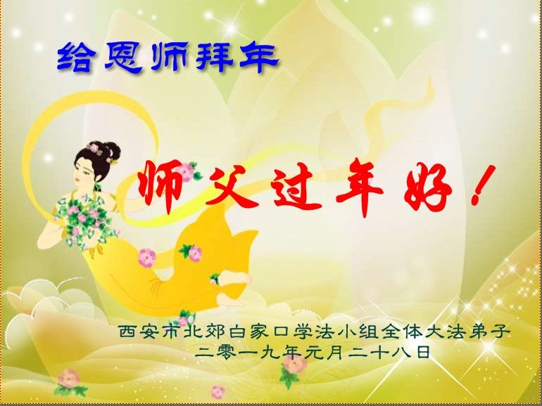 陕西省西安北郊丰禾路学法小组大法弟子给师尊拜年:师尊过年好!