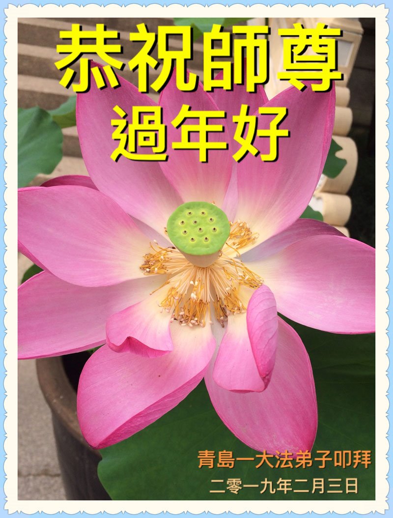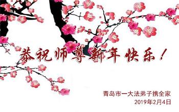 山东省青岛市大法弟子敬上 二零一九年二月一日 山东省青岛市一大法弟子携全家恭祝师尊新年快乐!