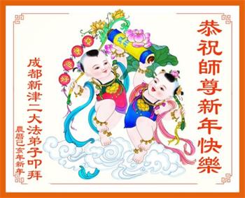 尊敬的师尊:值此新春佳节来临之际,弟子怀着无比感恩的心情带领全家恭祝师尊新年快乐!感谢师尊的默默付出。 大陆成都大法弟子一家 四川成都北门大法弟子恭祝师尊新年快乐!