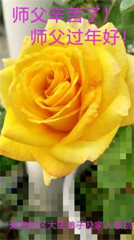 在新的一年里,我们会抓紧救人,兑现誓约,精進实修,不辜负师尊慈悲苦度。 四川成都北门一大法弟子恭祝师尊新年快乐!