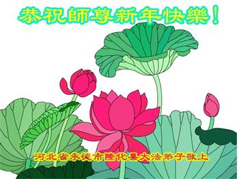 慈悲伟大的师父新年好!我们万分想念您,谢谢师尊的救度之恩!弟子们盼望师尊早日回来。我们知道师尊和大法就是我们生命的全部。新的一年又要开始了,在这些年的正法路上,我们随师正法,在风风雨雨中走到今天。师尊啊!无论修炼的路有多难、无论修炼的形势有多险,我们都会坚定不移的做好三件事,抓紧救度更多的众生,完成助师正法的史前大愿。我们景县全体大法弟子向慈悲伟大的师尊合十叩拜!大法弟子含着感激的泪水跪拜师尊!师尊您辛苦了!我们非常非常想念您!敬等慈悲伟大的师尊早日回国。 河北省邯郸市成安县全体大法弟子恭祝师尊新年好!