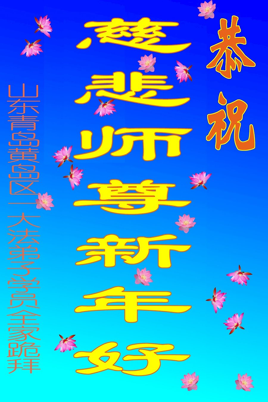 山东青岛黄岛区一大法弟子及学员全家恭祝师尊新年好!