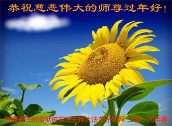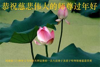 我是安徽安庆大法弟子,我代表被非法判刑迫害,关押在安徽省宿州监狱的丈夫同修和所有大法弟子向伟大的师尊拜年!感恩师尊的慈悲救度!师尊新年好! 叩首!合十! 云南在监狱被非法关押的全体大法弟子叩首向师尊拜年!恭祝师尊新年好!