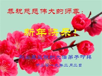 沈阳马三家女子劳教所被非法关押的大法弟子对师尊致以崇高的问候,师尊您辛苦了!新年好!坚定的只走师尊安排的路,一定跟师尊回家!叩拜。 山东烟台大法弟子及在监狱被迫害的家属向师父拜年!恭祝师父新年快乐!