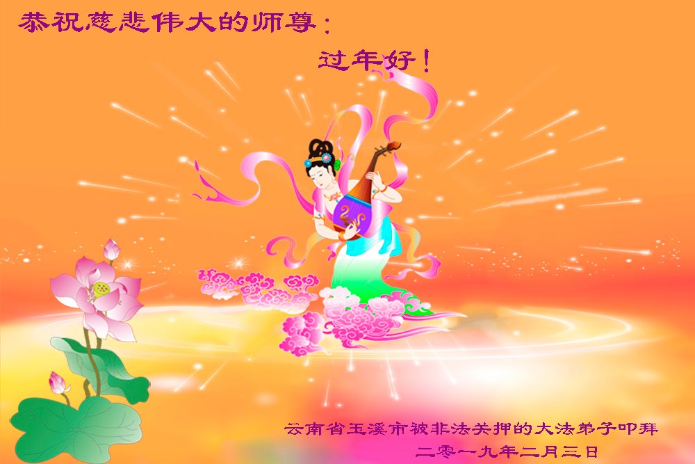 师父过年好!师父辛苦了!弟子对师尊的感恩无以言表。 弟子合十敬上 二零一九年二月三日 大陆一大法弟子及全家恭祝师父新年好!