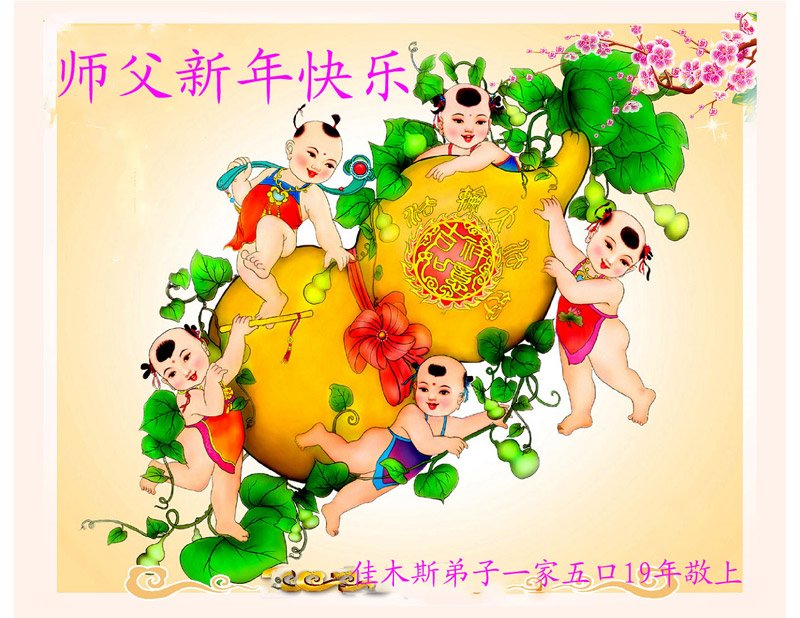 黑龙江省佳木斯大法弟子一家五口恭祝师父新年快乐!
