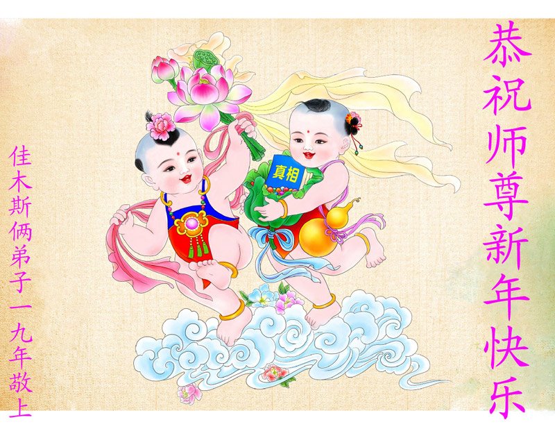黑龙江省佳木斯两大法弟子恭祝师尊新年快乐!