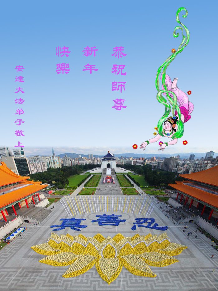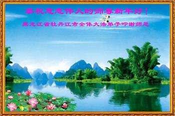 师尊新年快乐! 弟子们对师尊的感恩无以言表,唯有修好自己,做好师尊要求的三件事,把大法的真相和美好传遍人间!惟愿师尊笑! 黑龙江省牡丹江市全体大法弟子恭祝师尊新年好!