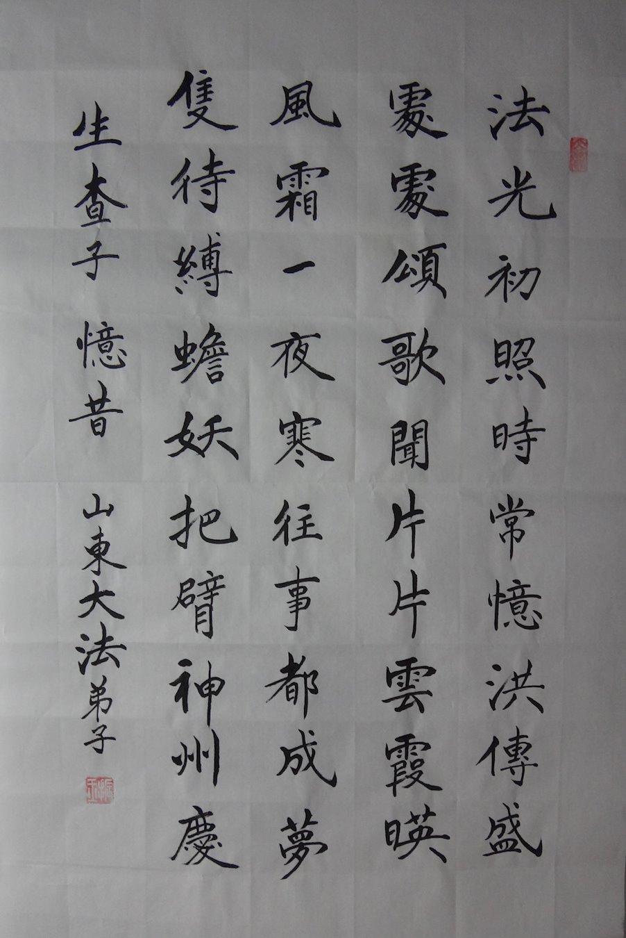 山东大法弟子恭祝慈悲伟大的师尊过年好! 生查子·忆昔 法光初照时,常亿洪传盛。 处处颂歌闻,片片云霞映。 风霜一夜寒,往事都成梦。 只待缚蟾妖,把臂神州庆。 山东大法弟子跪拜! 山东省烟台市福山区一学法小组大法弟子恭祝师尊新年好!