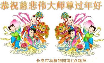 吉林省长春动植物园南门炼功点大法弟子恭祝慈悲伟大的师尊过年好!