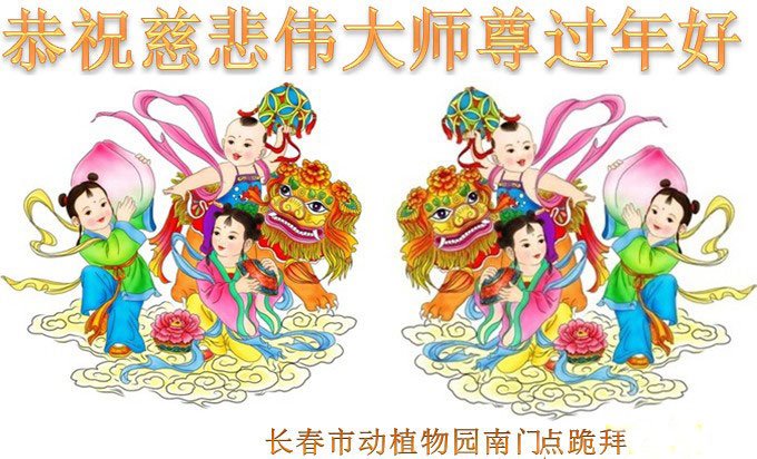 新年来临之际,祝恩师过年好,感谢师尊慈悲苦度。弟子在传播真相时,感到师尊就在弟子身边看护和点化着弟子;当我来到建设街想到师尊曾居住在这时,立刻感到能量场很强。在救度众生不多的时间里,抓紧做好三件事,少留遗憾。叫师尊少一份操心。 吉林省长春动植物园大法弟子恭祝慈悲伟大的师尊新年快乐!