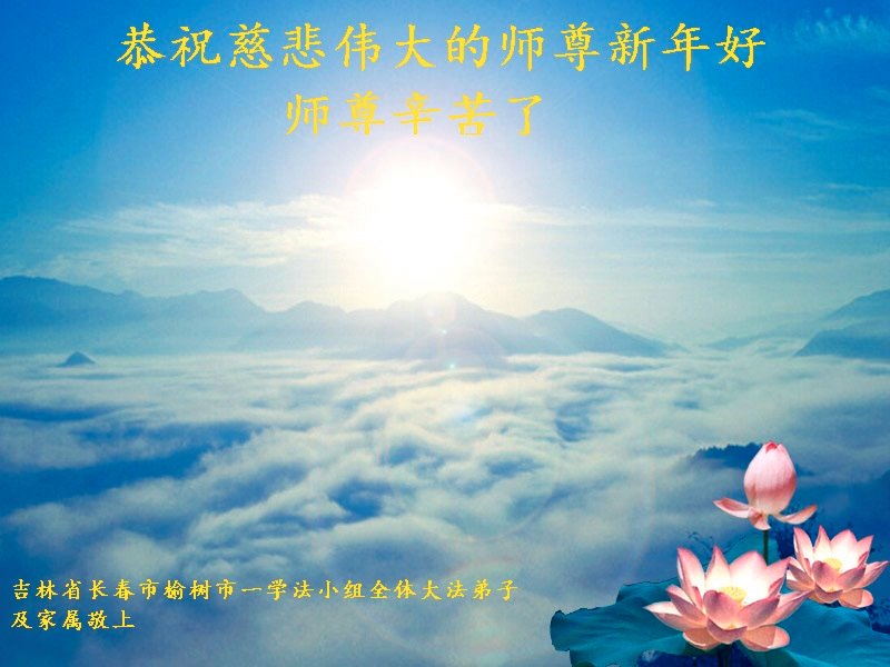 请师尊放心,弟子们在新的一年里一定要做好三件事,救众生。 吉林省长春榆树市一学法小组全体大法弟子恭祝师尊新年快乐!