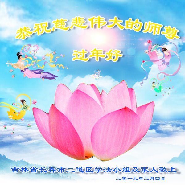 在新的一年里我们要努力做好三件事,不负师尊厚望,精進实修跟上正法進程,跟师父回家,祝师尊新年快乐! 长春一家大法弟子 二零一九年二月三日 吉林省长春一大法弟子恭祝师尊新年快乐!感谢师尊的慈悲苦度!