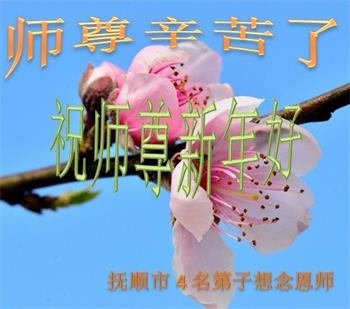 辽宁省营口市母子二人叩拜师尊给慈悲伟大的师尊拜年! 辽宁省抚顺四名大法弟子祝师尊新年好