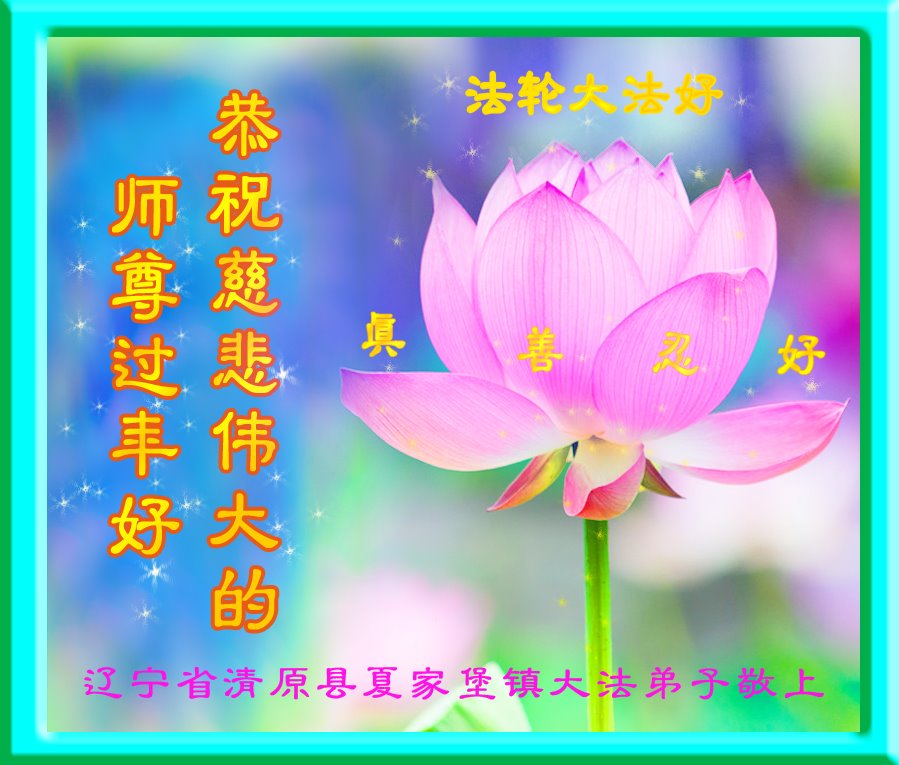敬爱的师尊您好!祝师尊大年快乐!师尊,在过去的一年里弟子们不精進,人心太多三件事做得不好,让师尊操心了,弟子认识到对不起师尊、对不起众生。决心在新的一年里听师尊的话,多学法,放下自我,放下人心,圆容整体,为众生着想。尽快的修去各种人心,多救人,圆容师尊所要的。弟子唯愿师尊笑。 辽宁省鲅鱼圈地区一老年大法弟子学法小组敬上 辽宁铁岭调兵山市大法弟子给师父拜年!