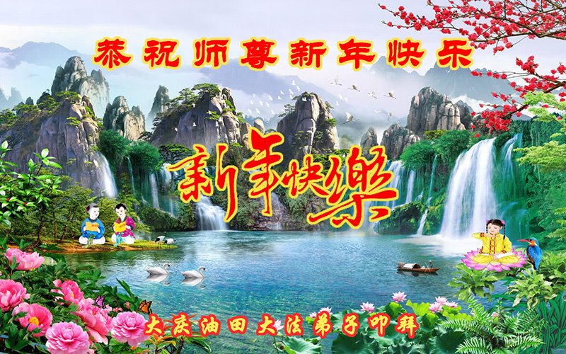 师父新年快乐!感谢师父慈悲苦度!师父辛苦了! 辽河油田三人学法小组的大法弟子祝师父新年快乐!