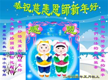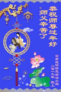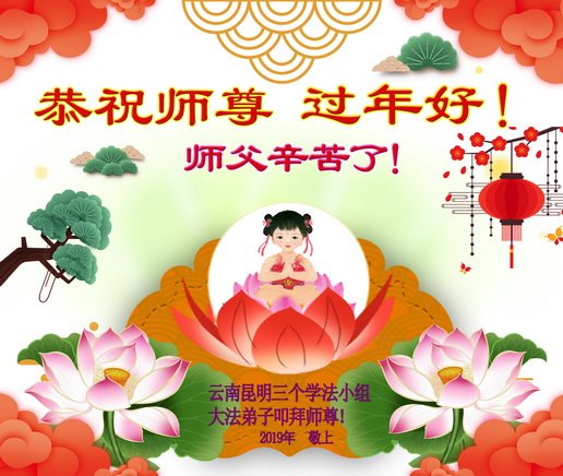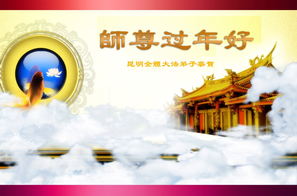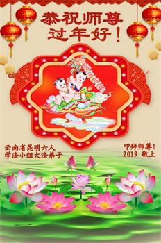 云南省云南昆明三个学法小组的大法弟子恭祝慈悲伟大的师尊过年快乐!师尊辛苦了!