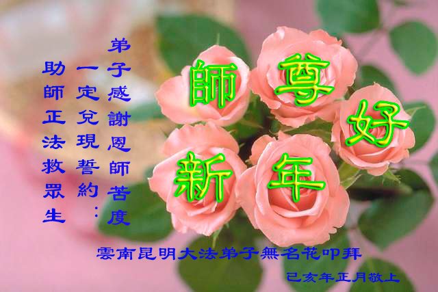 感谢师父救度之恩,弟子一定洗心革面,跟上正法進程。 云南昆明大法弟子恭祝师尊新年快乐!