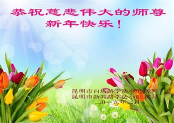 云南昆明北教学法小组大法弟子恭祝师尊新年快乐!