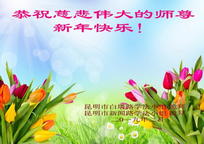 云南省昆明市两个学法小组大法弟子恭祝慈悲伟大的师尊新年快乐!