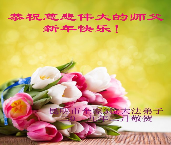 云南省昆明市一家三位大法弟子恭祝慈悲伟大的师父新年快乐!
