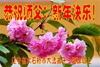 辽宁省营口市大石桥市三姐妹大法弟子恭祝师父新年快乐!