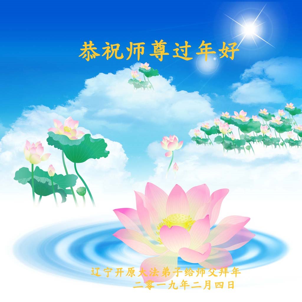 辽宁省辽阳市辽阳县首山全体大法弟子给师父拜年!师父过年好!师父您辛苦了,我们想念您 弟子合十 跪拜恩师! 二零一九年新年 辽宁省铁岭市大法弟子恭祝师尊新年快乐!