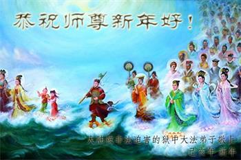 师父新年好!您辛苦了!弟子每一步的提高都离不开您的点化,每一次的关难都离不开您的看护,谢谢师父的慈悲保护!做好大法弟子应该做的。 刚从被迫害的魔窟中走出来的一大法弟子向伟大的师尊拜年!恭祝师父新年好!