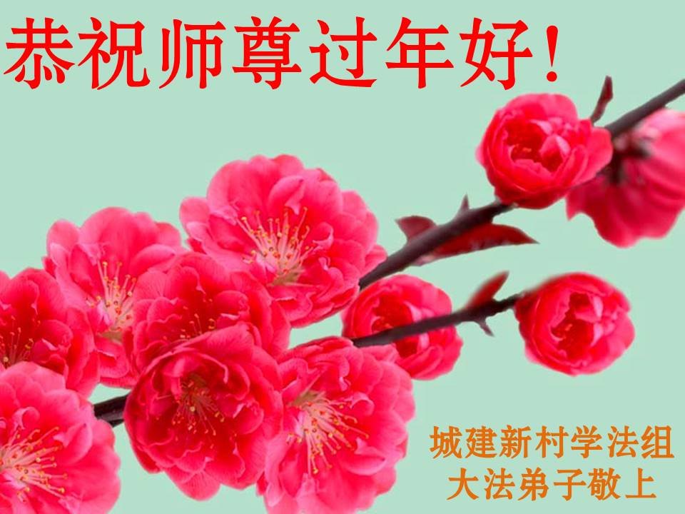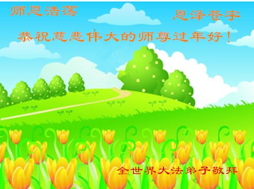 敬爱的师尊:祝您新年快乐!灵寿县全体大法弟子给师父拜年了!我们热切盼望着早日在大陆听您讲法!尽管我们做的差距很大,但我们坚信一定要跟您修炼到底!我们知道春天来了,大法弟子的春天,众生的春天就要到了!灵寿县全体大法弟子叩上 海丰一大法老弟子恭祝慈悲的师尊过年好!