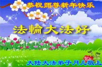 慈悲的师尊您好,我们中国大陆一学法小组全体大法弟子非常想念您!在新年来临之际,我们恭祝师父新年好!我们在新的一年里要继续做好三件事,多救人,跟师父回家。 中国大陆一大法弟子恭祝师父新年好!