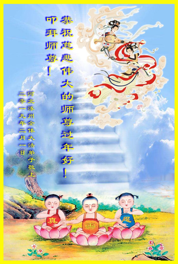 谢谢师父的慈悲救度! 在2019年,我们要更加精進实修多救人。 河北保定市白沟镇及东马营乡全体大法弟子恭祝慈悲伟大的师尊新年快乐!