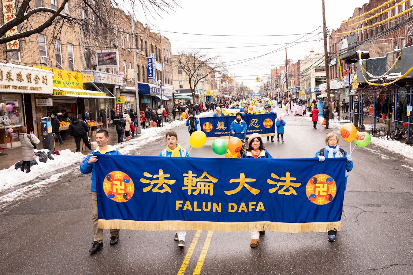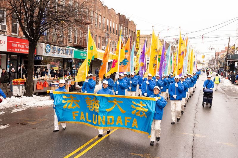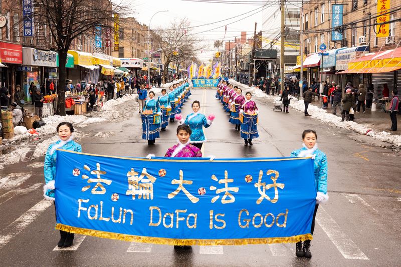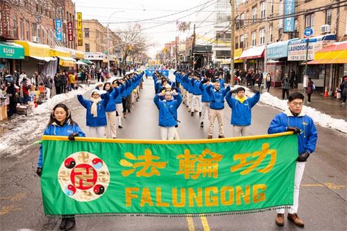 【明慧网二零一九年三月五日】二零一九年三月二日中午,雪后天晴,近千名法轮功学员在纽约的第三大华人社区——布碌仑八大道,举行了盛大游行,给民众送去法轮大法的真相和祝福。 图1~11:近千名法轮功学员在纽约的第三大华人社区——布碌仑八大道举行盛大游行。 |