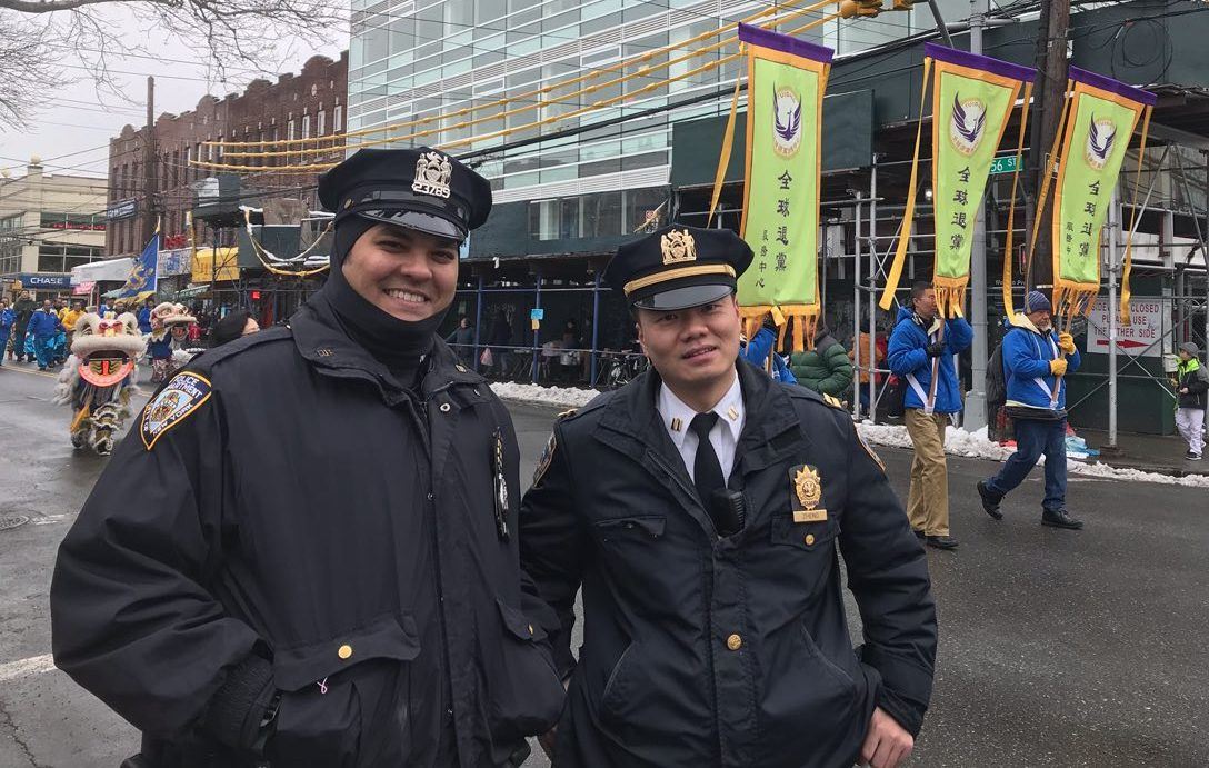 来自马来西亚的江先生站在路边,一直在用手机录像,他表示,他要把游行的视频发给马来西亚的同学和亲友圈,“不仅发给我的亲友,我会用社交媒体传给更多的人,应该让所有的华人都了解中共政府的罪行。” 江先生说:“法轮功是健身气功,中共政府却关押他们、迫害他们,甚至摘取他们的器官贩卖,这是反人性的行为。”他还说:“马来西亚很多人都是知道中共政府这些反道德、反人性的行径。” 观看游行的武女士说:“觉得很激动,因为在国内看不到嘛,是被制止的,在这可以自由地发声,很好。” 刚来美国两年的年轻人林翔表示,游行给人的感觉很好,“音乐悠扬祥和”。他坦承对法轮功不是很了解,但接到派发的法轮功真相资料后表示:“我会好好阅读,多了解一下法轮功。”看到游行横幅上的迫害讯息,他说“好人被迫害就是不对”。 徐先生第一次看法轮功游行,他说:“这在中国大陆是看不到的。” 来美十多年的福州移民董燕新说,小时候在中国时误以为法轮功不好,现在看到法轮功的队伍,明白了法轮功学员都是“正派和善的好人”。 董燕新说,她家三代都是基督徒,是信神信主的,共产党却是反神的。她提起小时候戴过红领巾,并很爽快地答应声明退*队-。 观看游行的民众武女士说:“我已经退了,能够脱离它很好啊,因为从小都是受骗的嘛。”  图14:维持秩序的警察赞扬法轮功学员们在传播好的信息, |