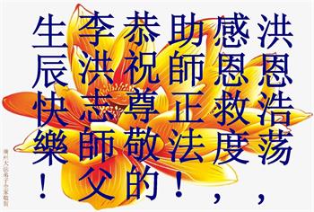 广州市花都区全家大法弟子恭祝师父生日快乐!弟子在正法最后的日子里要更加精進,跟师父回家。正念正行! 广东省广州市越秀区一学法小组大法弟子恭祝师父生日快乐!
