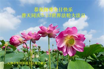 普天同庆世界法轮大法日! 天津市外贸大法弟子恭祝师尊生日快乐!