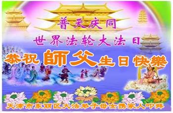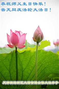 中国大陆天津北辰全体大法弟子: 恭祝师尊生日快乐!感谢师尊救度洪恩! 天津滨海新区大法弟子敬祝师尊生日快乐!欢庆法轮大法日!