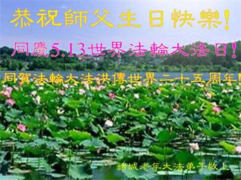 在这普天同庆的时刻,弟子们恭贺法轮大法日!同时感谢师父的慈悲救度,我们一定做好三件事,精進实修,随师父回家。 |