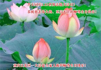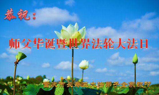 普天同庆世界法轮大法日! 恭祝师尊生日快乐! 重庆市南岸区大法弟子 恭贺 重庆市长寿区大法弟子全家恭祝师父华诞暨世界法轮大法日!