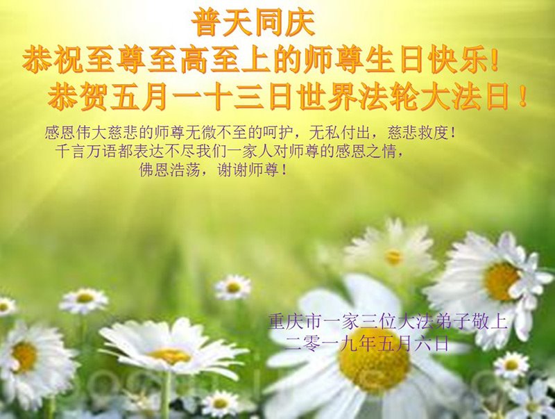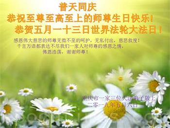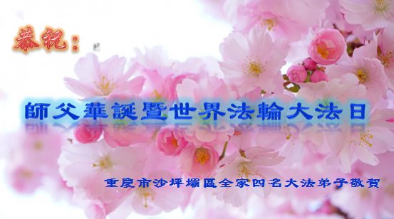重庆沙坪坝区全家四名大法弟子恭祝师尊华诞暨世界法轮大法日!